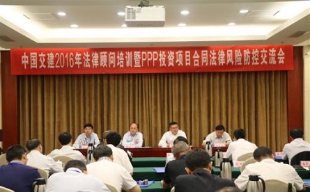 为提升法律顾问队伍素质和能力,9月20至23日,中交集团2016年度法律顾问培训暨PPP投资项目合同法律风险防控交流会在京举办。中交集团执行董事、财务总监傅俊元参加开班仪式并讲话。国务院国资委政策法规局三处卢健勋处长到会为学员作国资委法治建设政策解读。中交集团各单位总法律顾问、主管法律工作的负责人和法律管理部门负责人等共计115名同志参加了培训和交流会。