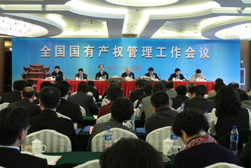 4月7日-9日,国务院国资委产权局在湖北武汉组织召开了2011年全国国有产权管理工作会议,国务院国资委主任、党委书记王勇同志对大会作出重要批示,副秘书长郭建新同志受王勇同志委托出席会议做了题为《围绕“两新”目标,全面加强企业国有产权管理工作》的重要讲话,产权局局长邓志雄同志做了年度工作报告。