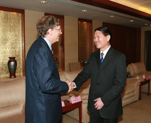4月19日下午,国务院国资委主任李荣融会见了美国微软公司董事长比尔·盖茨一行。