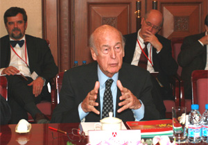 李荣融主任介绍了国资委的性质、职能和自成立以来所做的主要工作以及中央企业去年所取得的主要成绩。荣融主任表示,国资委将继续改善中央企业的公司治理结构,推动国有企业的改革和重组。德斯坦先生对国资委自成立以来所取得的成绩表示赞赏。双方还就中法两国企业加强经贸合作等议题交换了意见。