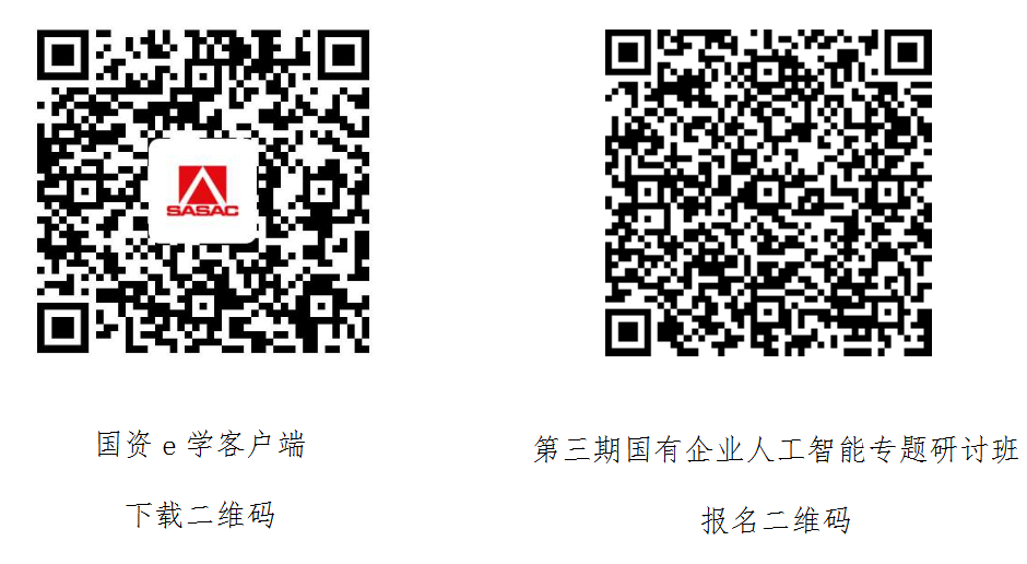 5.获取培训通知附件及更多信息请扫描下方二维码下载“国资e学”手机客户端或访问“国资e学”网页elearning.tcsasac.com、关注“国资委干部教育培训中心”公众号。