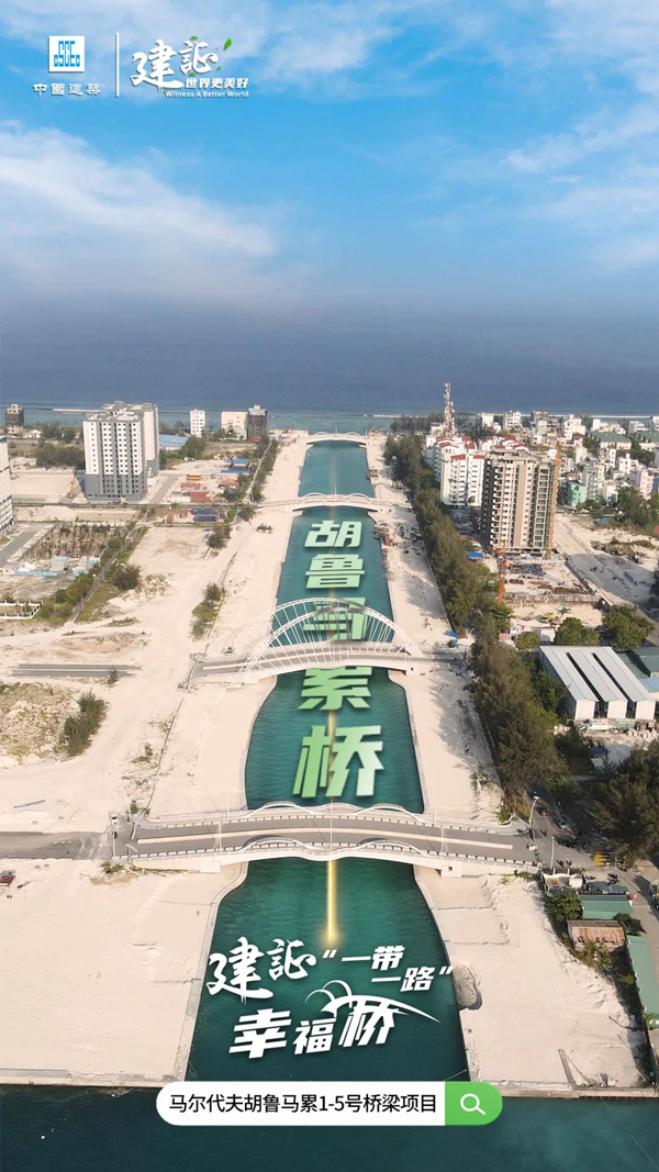 由中建国际承建的马尔代夫胡鲁马累1-5号桥梁项目位于马尔代夫胡鲁马累岛1、2期交界处,由5座桥梁组成,是马尔代夫现代历史上第一个将两个人口最多的填海居民岛屿互联互通的工程,也是马尔代夫首个结构形式为预应力后张法现浇空心板梁的单跨简支式桥梁项目。该项目高效联通胡鲁马累岛两座填海岛,极大地便利了当地民众的出行,发挥交通、观光等一体化功能,拓展了胡鲁马累居民的生活空间,被百姓亲切地称呼为“联通幸福之桥”。