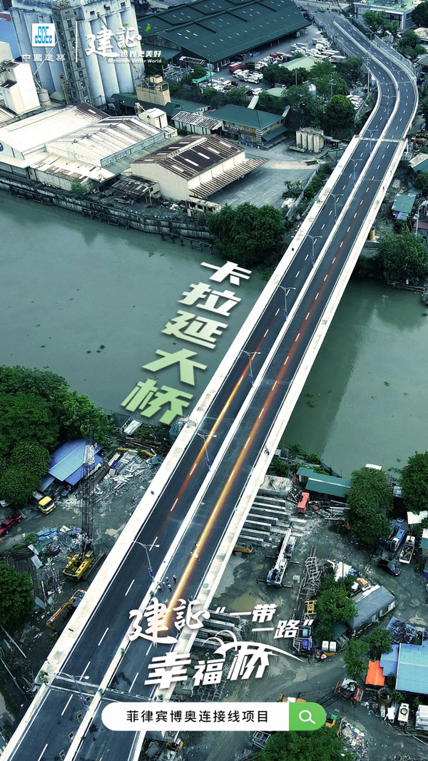 由中建交通承建的菲律宾博奥连接线项目是菲律宾政府改善国家交通状况的重点工程。卡拉延大桥全长440米,采用双向四车道设计,横跨帕西格河,是菲律宾博奥连接线项目的主要组成部分,该桥梁和道路工程的建成通车极大地缓解了马尼拉的交通拥堵状况,使博尼法西奥环球城和帕西格市、曼达鲁永市之间的交通时间从1个小时缩短到仅12分钟,对菲律宾吸引国外投资和促进当地经济发展具有重大意义。