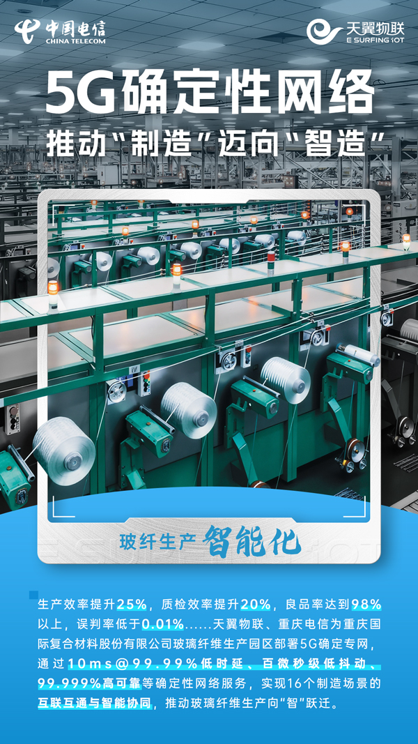 近年来,中国电信天翼物联大力开展确定性网络关键核心技术攻关,面向工业生产核心环节,自主研发推出5G确定专网,提供10ms(毫秒)低时延、可靠性达到99.99%,以及百微秒级低抖动、高可靠性达到99.999%等确定性网络服务,全面满足工业车间级、产线级的自适应时延、抖动、可靠等确定性需求,推动5G从外围辅助环节向生产核心环节规模应用,助力“中国制造”加速迈向“中国智造”,为全球制造业数字化转型贡献中国智慧和中国方案。