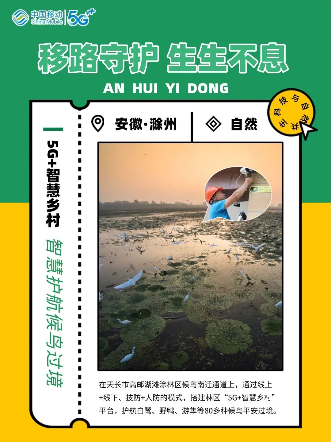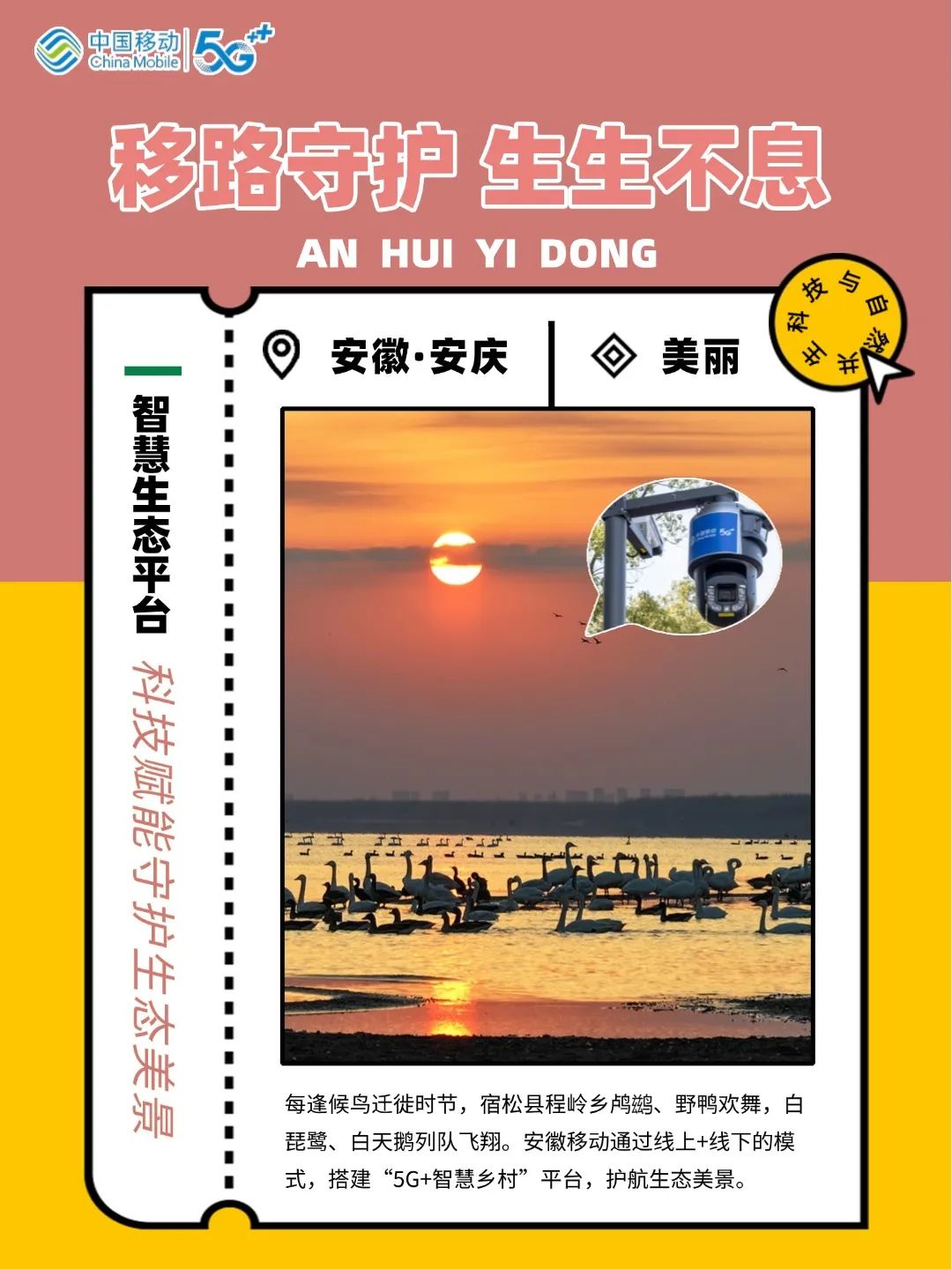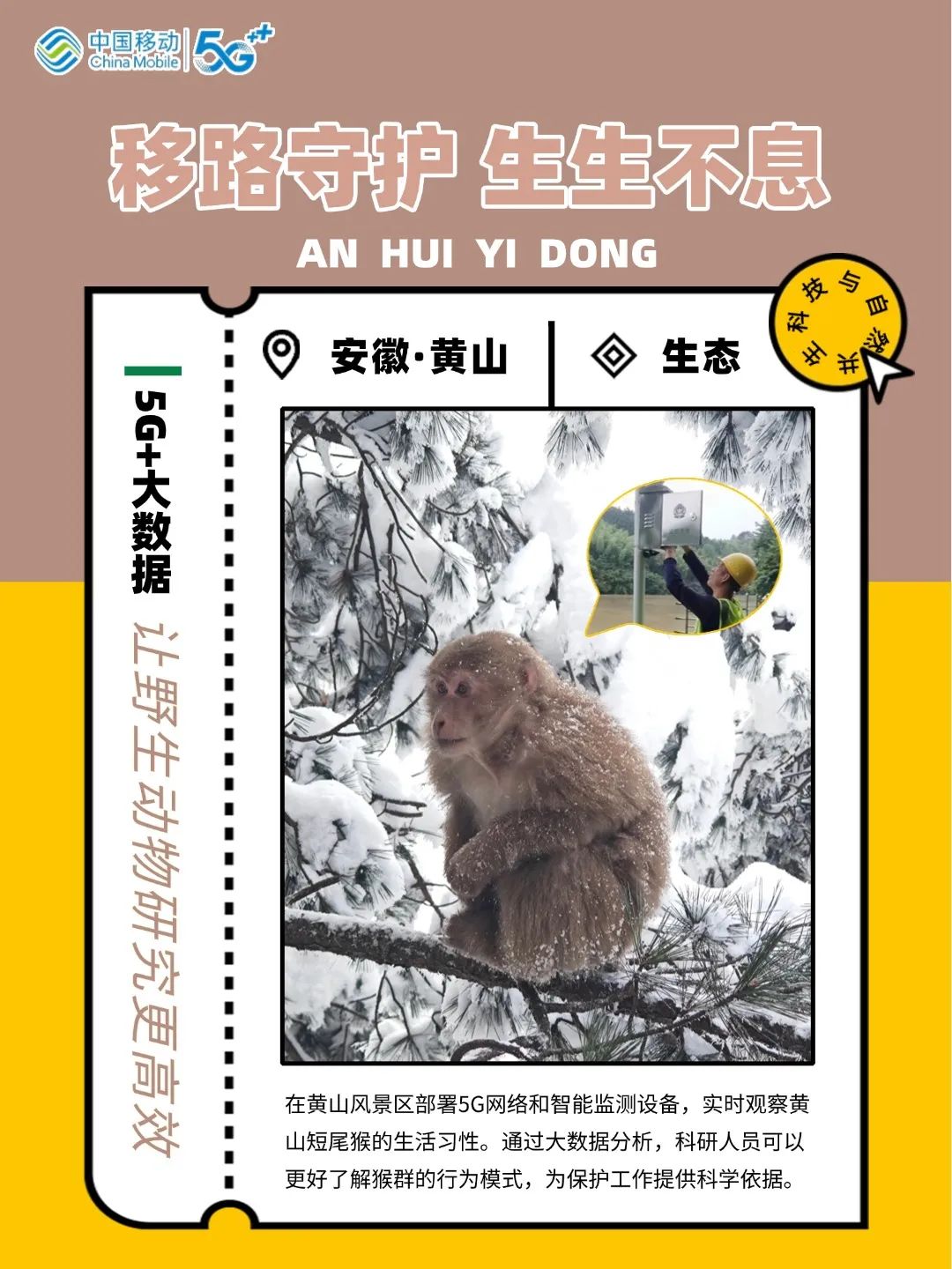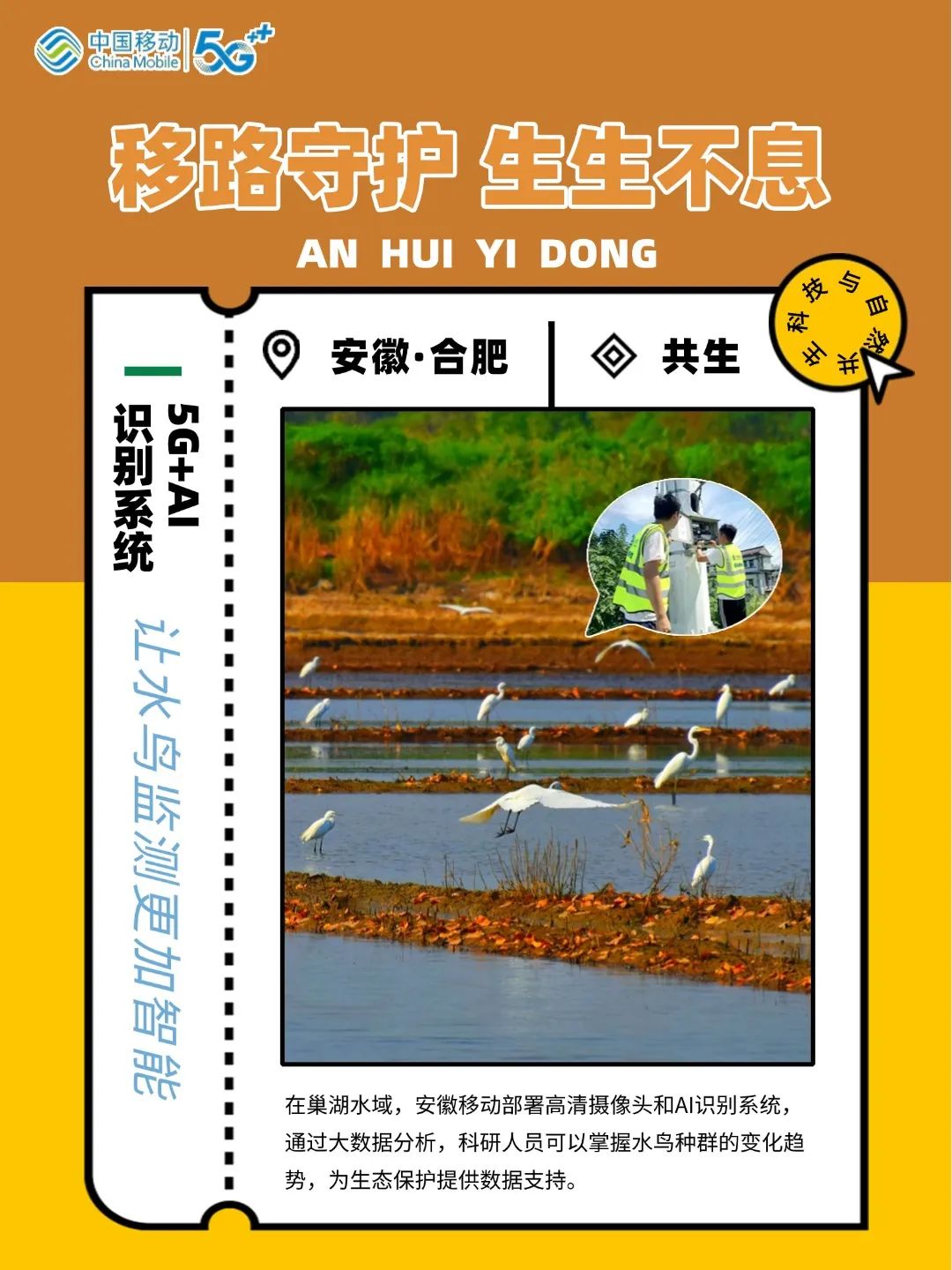 近年来,从迁徙候鸟到黄山短尾猴,从巢湖之滨到长江之畔,从智慧养殖到生态监测……无论是守护濒危物种,还是赋能乡村振兴,中国移动安徽公司用5G、物联网、AI等创新技术为野生动植物保护注入智慧力量,让绿水青山与科技共生,共建人与自然和谐共处的美好家园。