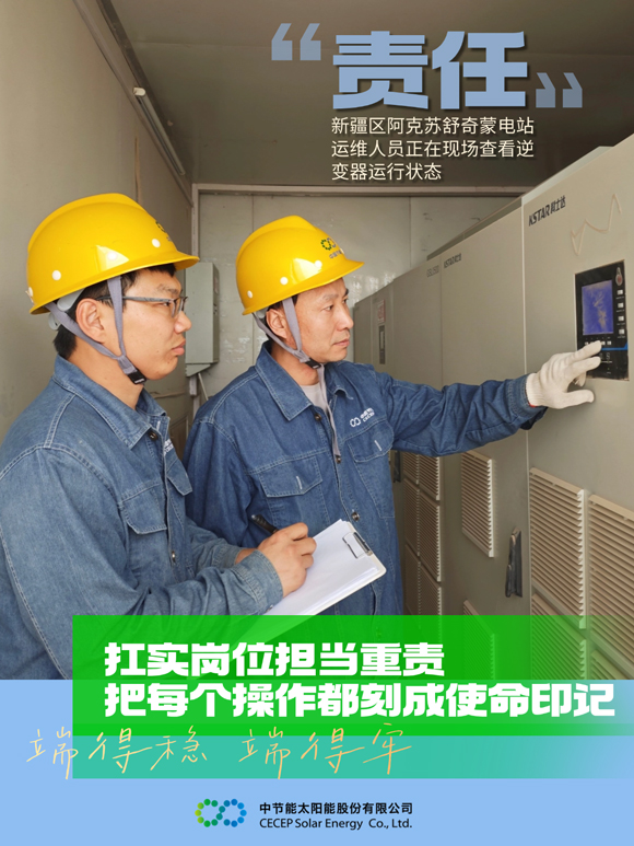 近年来,中国节能所属太阳能公司一线工作人员守稳安全生产防线,坚守岗位,用行动诠释责任,为筑牢国家“能源长城”添砖加瓦。