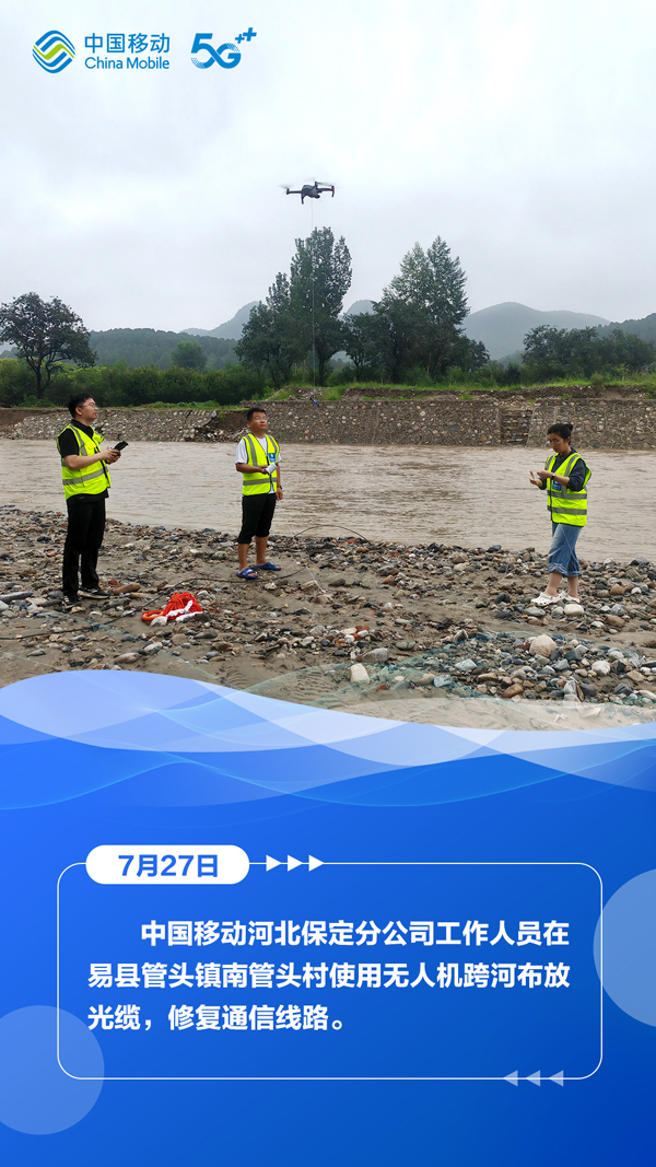 7月27日,河北省气象台、省水利厅和省气象局、省自然资源厅与省气象局继续发布暴雨蓝色预警、山洪灾害气象风险蓝色预警、地质灾害气象风险预警。在滚滚洪流中,中国移动以“汛”为“令”,全力抢修受灾区域通信,在暴雨中架起通信“生命线”,为受灾群众点亮着希望。