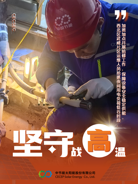眼下正值迎峰度夏的关键时期,中国节能所属太阳能公司开启“高温护航”模式,运维人员坚守岗位,全力保障电力供应。