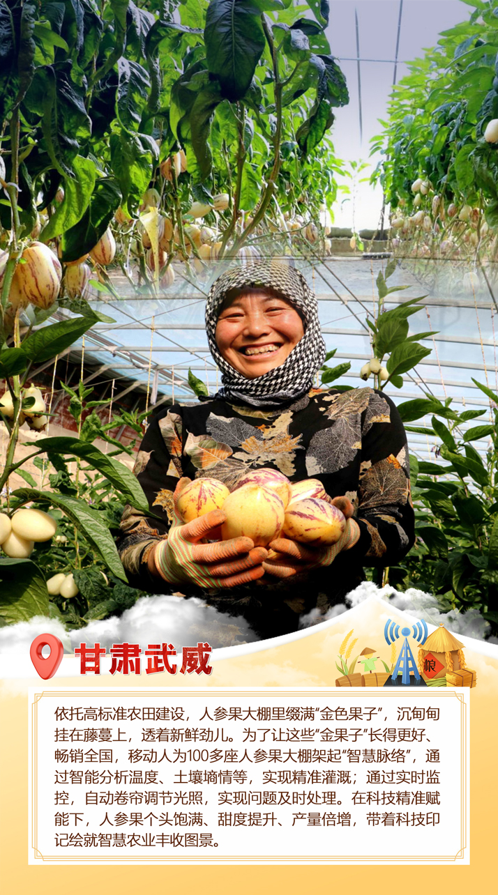 五谷丰登、稻海茫茫、瓜果飘香、蟹肥菊黄……这些五彩斑斓的绝美“丰”景,在我国广袤大地上徐徐展开,丰收和笑容背后藏着中国移动工作人员默默守护的身影。