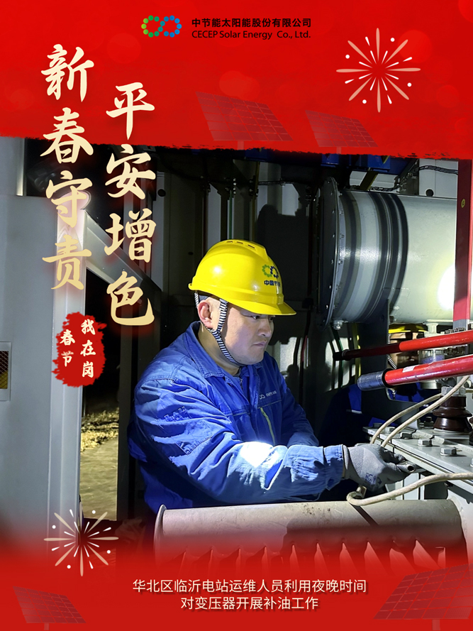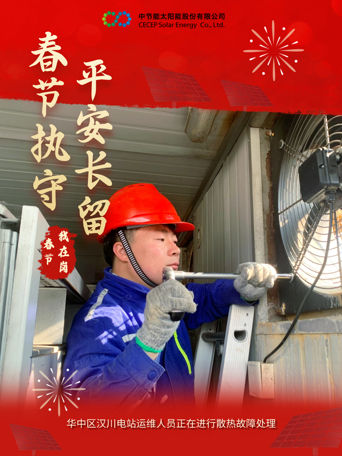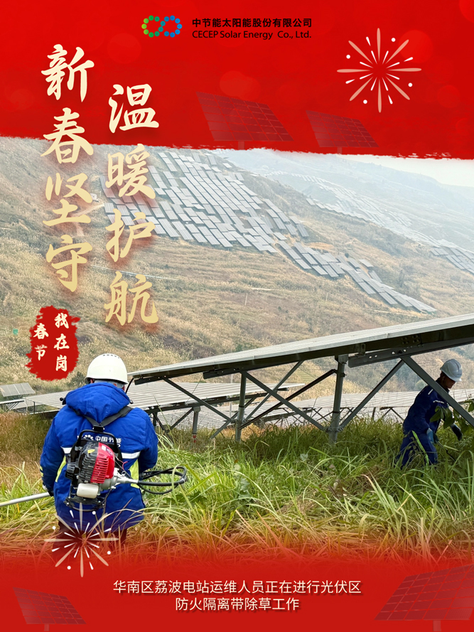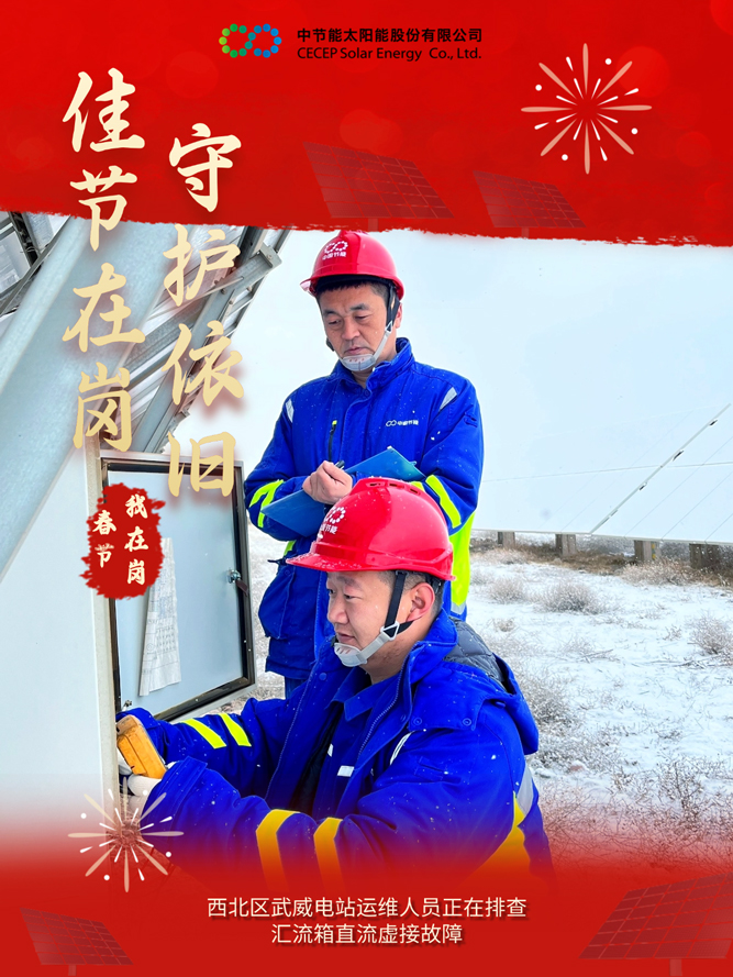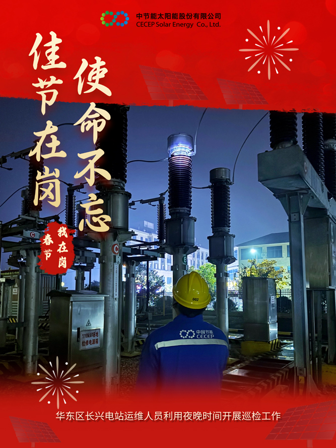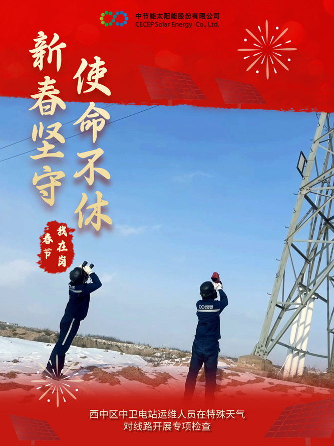 为做好春节期间的安全生产与电力保供工作,中国节能所属太阳能公司积极响应国家能源保供号召,各电站严格落实各项工作措施,抓实运维质效管控,确保春节期间设备平稳运行,为千家万户欢度佳节提供坚实的能源保障。