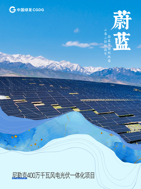 尼勒克400万千瓦风电光伏一体化项目现场,一块块光伏板随山地走势连绵起伏,光伏板下青草日渐茂盛,羊群悠闲漫步其间……板上发电、板下牧羊,是光伏基地也是牧场,中国绿发以“牧光互补”模式助力绿色低碳发展。
