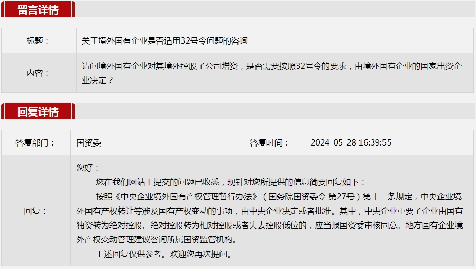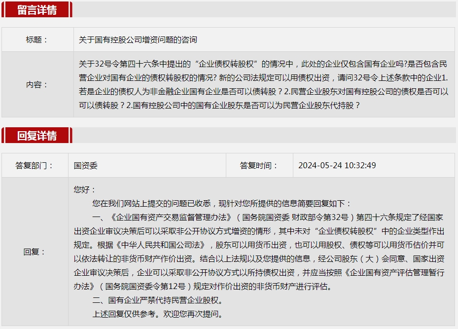 2024年5月国资委网站政务咨询栏目部分网友提出的咨询,我们初步做出了认真的回应,现选择五条关注度高、点击量高的问题,再次推荐分享。
