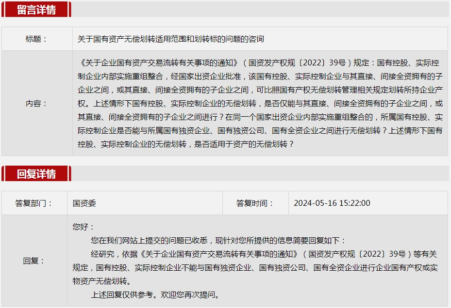 3.关于国有资产无偿划转适用范围和划转标的问题的咨询