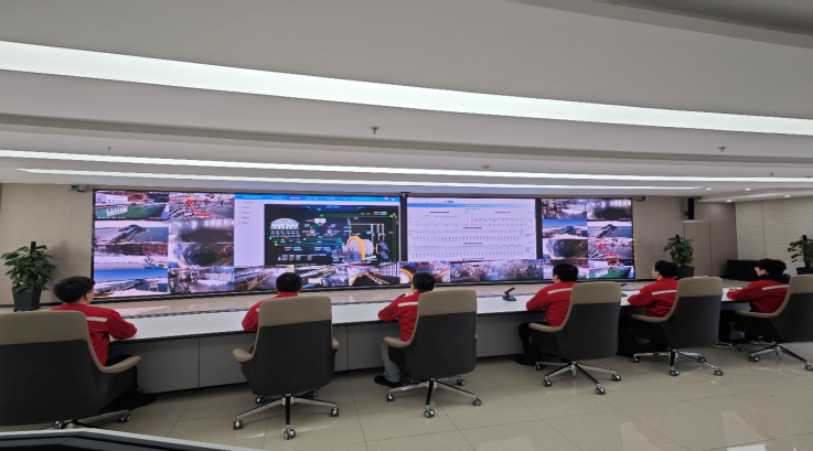 走进中铁资源鹿鸣矿业调度指挥中心,32平方米的电子大屏幕上,地质构造图、设备运行曲线、矿石运输热力图等,密密麻麻的数据和蛛网般的曲线呈现在眼前。