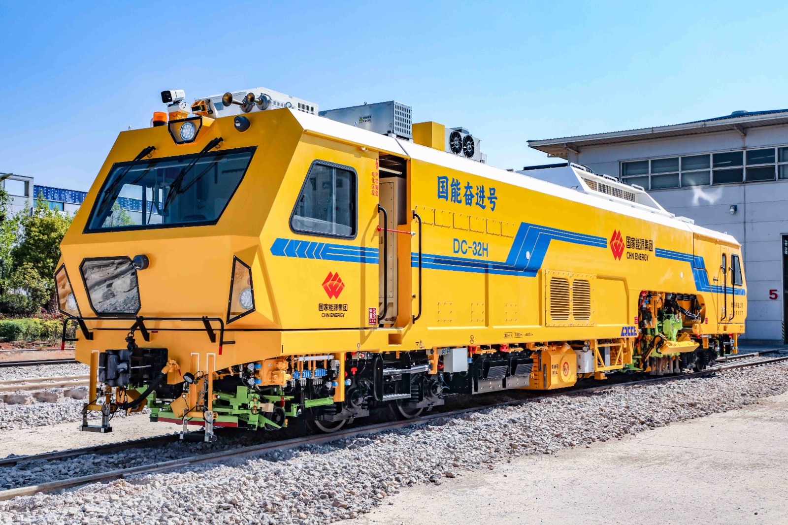 我国首台铁路隧道双动力智能捣固车“国能奋进号”。