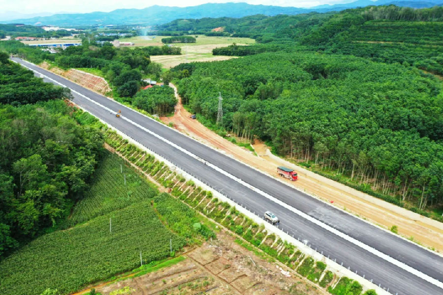 日前,(勐)腊(勐)满(中老界)高速公路全线路基工程基本完工,并转序超过50%,正全力推进路面铺筑和附属工程建设,岔河路段开始路面铺筑施工,全线将于年内建成。
