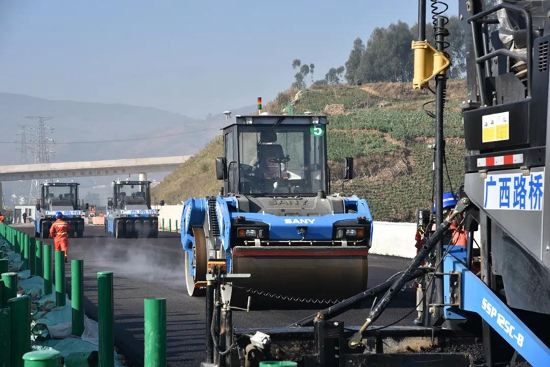 近日,在广西北部湾投资集团有限公司直属企业广西路桥集团投资建设的云南省昌宁至保山高速公路项目(以下简称“昌保高速”)№4标清水沟K79+440—K79+940段施工现场,高等级摊铺机、双钢轮压路机、轮胎压路机等机械群整装待发。一场别开生面的高速公路沥青路面无人驾驶摊铺即将开始,这是北投集团首次在新建高速公路沥青面层使用无人机群智能化施工。
