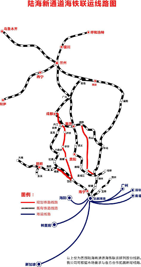 如今,西部陆海新通道的“朋友圈”越来越大、越来越广,发展速度也越来越快。2020年,西部陆海新通道海铁联运班列累计到发4607列,同比增长105%,班列开行量和集装箱发运量均实现了翻一番。2021年,站在“十四五”新的历史起点上,四川遂宁、湖南怀化到北部湾港的铁海联运班列相继首发,1月新通道累计到发班列456列,同比增长128%,实现了开门红,西部陆海新通道正向着更深层次、更高水平的发展之路扬帆起航。