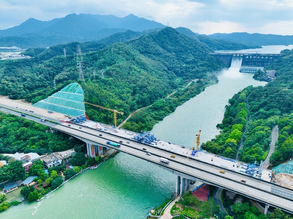 近日,广东交通集团所属长深高速河惠段改扩建项目新丰江大桥完成中跨合龙段浇筑施工,顺利实现合龙。