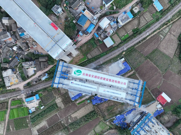 大谷堆大桥位于云南楚雄南华县龙川镇大谷堆村,是云南交投姚南高速公路项目的重点控制性工程,全长636米,转体重量达14500吨,主墩高64.2米,墩中转体系统距离地面20.5米。大桥上跨广大铁路、四条油气管线和龙川江,列车通行密集,作业场地狭小、施工条件极其复杂。如何在确保既有运输线运行安全的情况下,让重达数万吨的庞然大物顺利“转身”,成为建设者需要面对的难题。