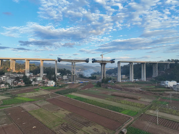 面对高达64.2米的高空作业挑战,以及作业面受限、施工精度要求极高等重重困难,建设者们精心搭设临时支架,对转体构件的安装精度进行严格控制,确保施工安全稳定。同时,凭借有效的检测数据与精细的规划,成功克服了在转动过程中,上下墩身承受着巨大的扭矩和不平衡风荷载的难题,确保了转体系统的受力平衡与转动平稳。最终,在全体建设者的共同努力下,大谷堆大桥顺利完成转体施工,为姚南高速公路年底建成通车奠定了坚实基础。
