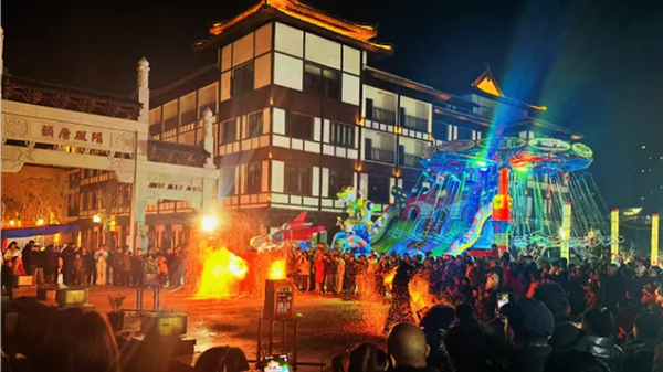 打铁花、火壶表演、传统舞狮、年味集市点燃隋唐运河古镇景区夜经济,非遗文化火爆出圈。淮北首届非遗老字号博览会3月定档隋唐运河古镇景区,着力打造下一个“网红打卡点”。