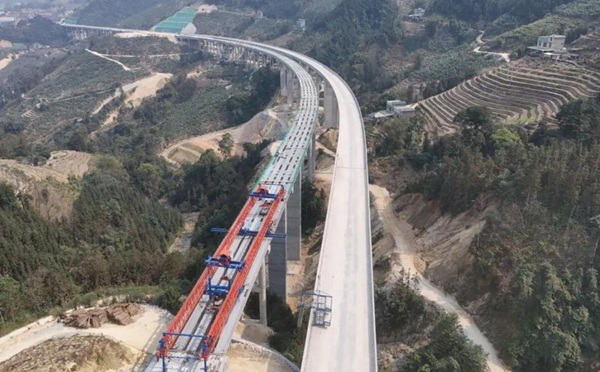 目前,渝昆高铁全线路基土石方已完成95%,桥隧施工完成超80%。