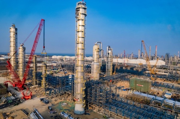 据了解,该项目由福建能源石化集团与沙特基础工业公司合资建设,自去年2月19日主体工程全面动工以来,屡创国内新的施工纪录,仅用32天就实现乙烯五塔“塔起灯亮”,全球最大EO/EG(环氧乙烷/乙二醇)洗涤塔仅用25天完成“穿衣戴帽”施工……预计该项目建成后年产值约300亿元,将带动上下游投资超千亿元。