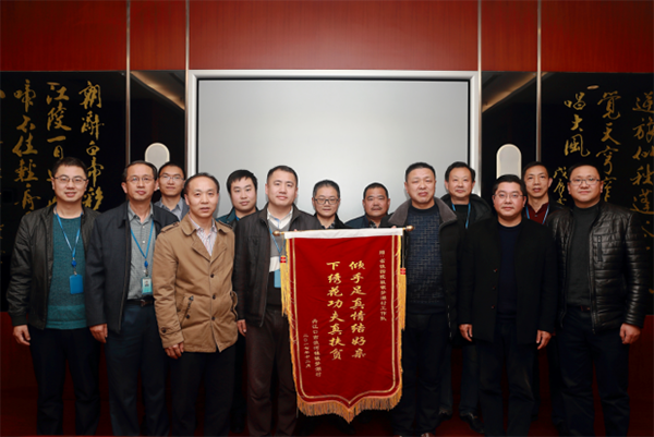 这一天,中国铁建所属铁四院精准扶贫定点帮扶的湖北省十堰市丹江口市浪河镇银梦湖村的村民,到武汉专程送达“脱贫出列”的喜讯,并赠送了一面题有“倾手足真情结好亲 下绣花功夫真扶贫”的锦旗。