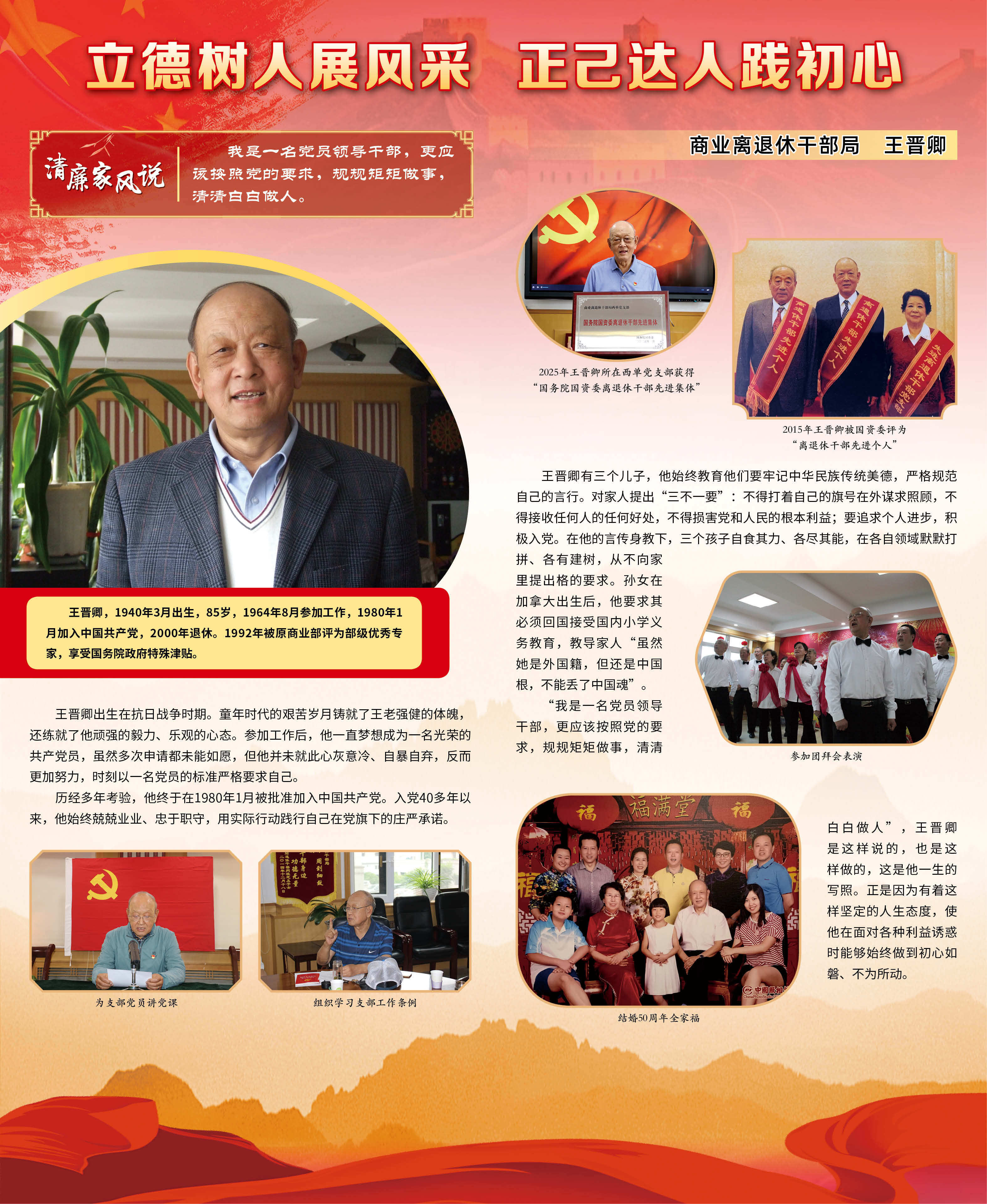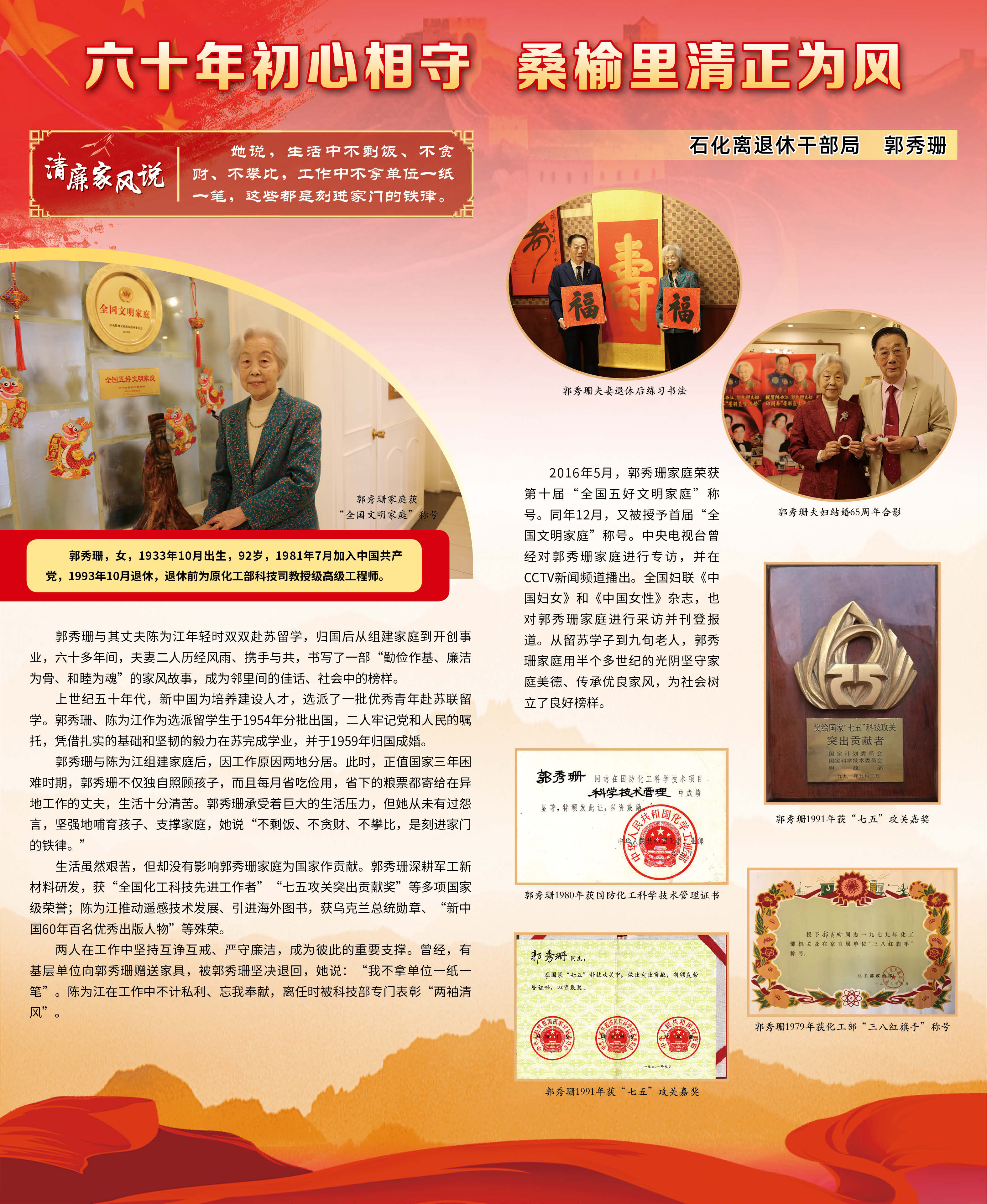 七一期间,国务院国资委管理局精心组织举办离退休干部清廉家风故事展,以图文并茂的形式展出了10个具有代表性的老同志的家风故事。活动期间,委机关广大干部职工积极观展,大家纷纷表示,这些故事质朴感人、蕴含着历久弥新的清廉理念和家国情怀,是老同志留下的宝贵“传家宝”,一定要向老同志们学习,让良好的家风在传承中弘扬,助力国资央企党风廉政建设,助力营造风清气正的良好氛围。