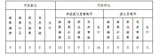 (二)依申请公开情况。全年共收到信息公开申请414件,上年度结转办理16件,已按规定办结421件,结转下年度办理9件。已办结的申请中,予以公开112件、部分公开16件、不予公开70件、无法提供174件、不予处理6件、其他处理43件;因信息公开被申请行政复议0件、提起行政诉讼14件。提起的行政诉讼,为未经复议直接起诉件,其中结果维持13件,尚未审结1件。