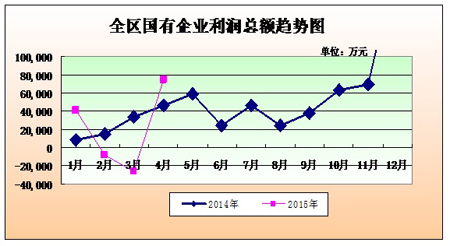 1-4月份,新疆国有及国有控股企业生产经营运行平稳,营业收入、上交税费增长,利润总额有所下降。截止4月,全区累计实现营业收入247.77亿元,同比增加23.79亿元,增长10.6%;累计实现利润总额8.07亿元,同比少增2.96亿元,下降26.8%;上交税费19.38亿元,同比增长4.44亿元,增长29.70%。截止4月底,全区国有及国有控股企业资产总额7,233.19亿元,同比增加1,055.22亿元,增长17.1%;净资产2,532.33亿元,同比增加233.54亿元,增长10.20%;资产负债率65.00%,同比增加2.21个百分点。