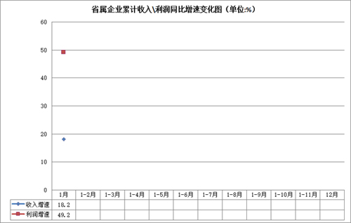 2017年安徽省省属企业开局良好。1月份,实现营业收入497.7亿元,同比增长18.2%;实现利润总额18.7亿元,同比增长49.2%;实现劳动生产总值96.9亿元,同比增长8.9%。月末资产总额13332.9亿元、所有者权益总额4872.7亿元,同比分别增长4.6%、9.4%。