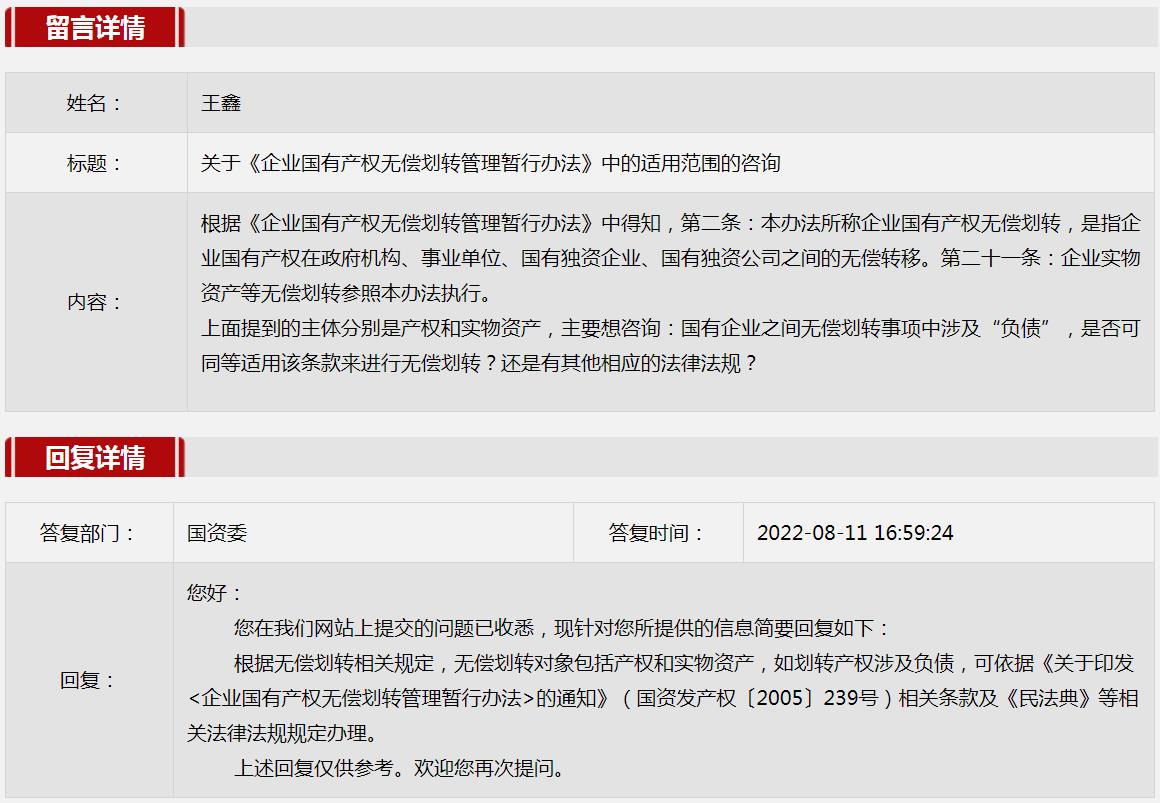 2022年8月国资委网站政务咨询栏目部分网友提出的咨询,我们初步做出了认真的回应,现选择五条关注度高、点击量高的问题,再次推荐分享。