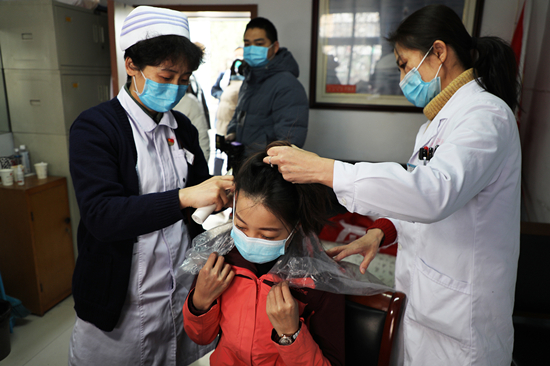 为了在武汉抗疫战场上方便穿防护服,避免头发外露沾染病毒,他们做了第一项出发准备——理发。
