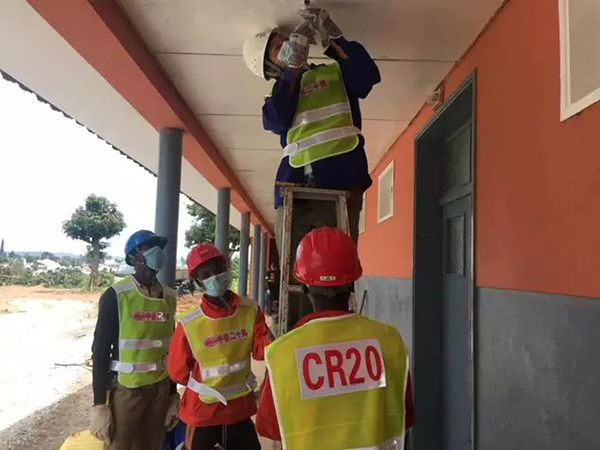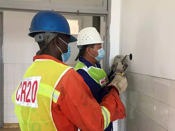 接到政府支援请求后,中铁二十局集团安哥拉国际公司从周边项目抽调2名电工及12名当地员工立即援驰。为尽快完成医院电路改造维修任务,援建员工每天早上6点多出门、晚上7点多下班,午餐由项目部安排专人送至施工现场,最多只预留半小时的吃饭时间。“时间很紧张,我们早一分钟完成任务,安方人民的安全就能提前有一份保障。”参与建设任务的中方员工步延辉说道。