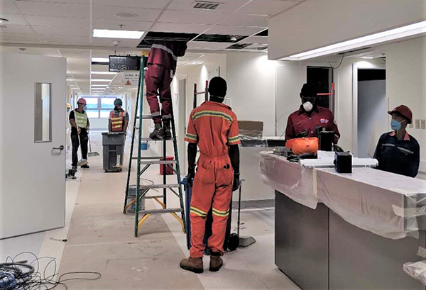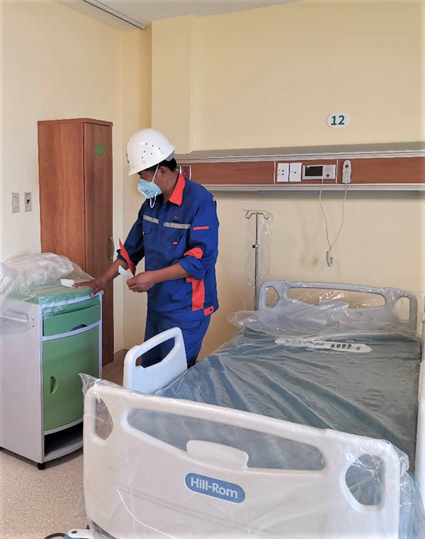 “在疫情期间实施抢工,挑战比以往更大。但为了特多人民的生命健康安全,我们会像国内抢建火神山医院一样,担起我们的责任。”项目负责人李东生表示,项目部既要迅速响应业主需求,还要控制施工人员密度,防止出现交叉感染。项目部紧急召开会议,暂停其他区域施工,协调多方资源,将其他区域床位设备转移到指定区域。经过7天的紧张工作,当地时间3月24日,所有病房床位和设备已移交给业主。