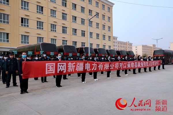 国网新疆电力有限公司对口策勒县就业扶贫人员欢送仪式现场。萨妮娅 摄