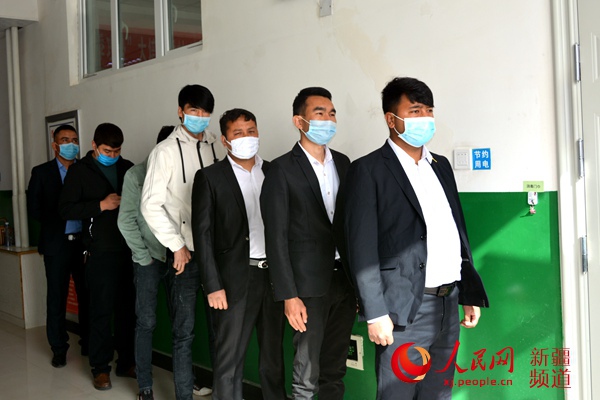 策勒县各乡镇应聘人员排队等候面试。萨妮娅 摄