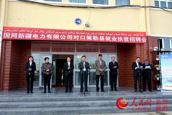 国网新疆电力有限公司对口策勒县就业扶贫招聘会启动仪式现场。萨妮娅 摄