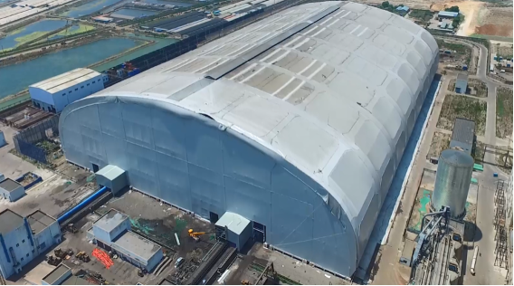 2019年6月28日,亚洲最大跨度大唐国际河北王滩发电公司2×600兆瓦机组封闭煤场正式投入运行。该项目采用单拱单跨桁架膜结构,中间不设立柱,东西跨度288米、南北跨度211米、顶部高度59米。机组投产后彻底消除了煤场扬尘,具有巨大的社会效益和环保效益。
