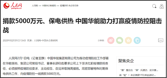 人民网:捐款5000万元、保电供热