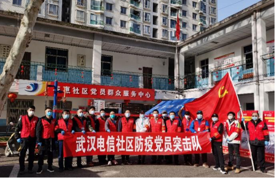 2020年3月15日, 中国电信武汉分公司派出的社区防疫党员突击队来到江岸区劳动街花惠社区开展服务工作