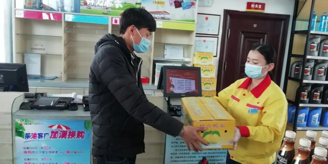 “先生,您尝尝咱这魏县本地鸭梨,甜脆汁多,清肺开胃。买鸭梨就是献爱心,吃鸭梨也是助力战‘疫’,原价25一箱的大个鸭梨,现在只需油品消费满200元,加10元换购……”一有顾客进便利店,加油员就赶紧推销。