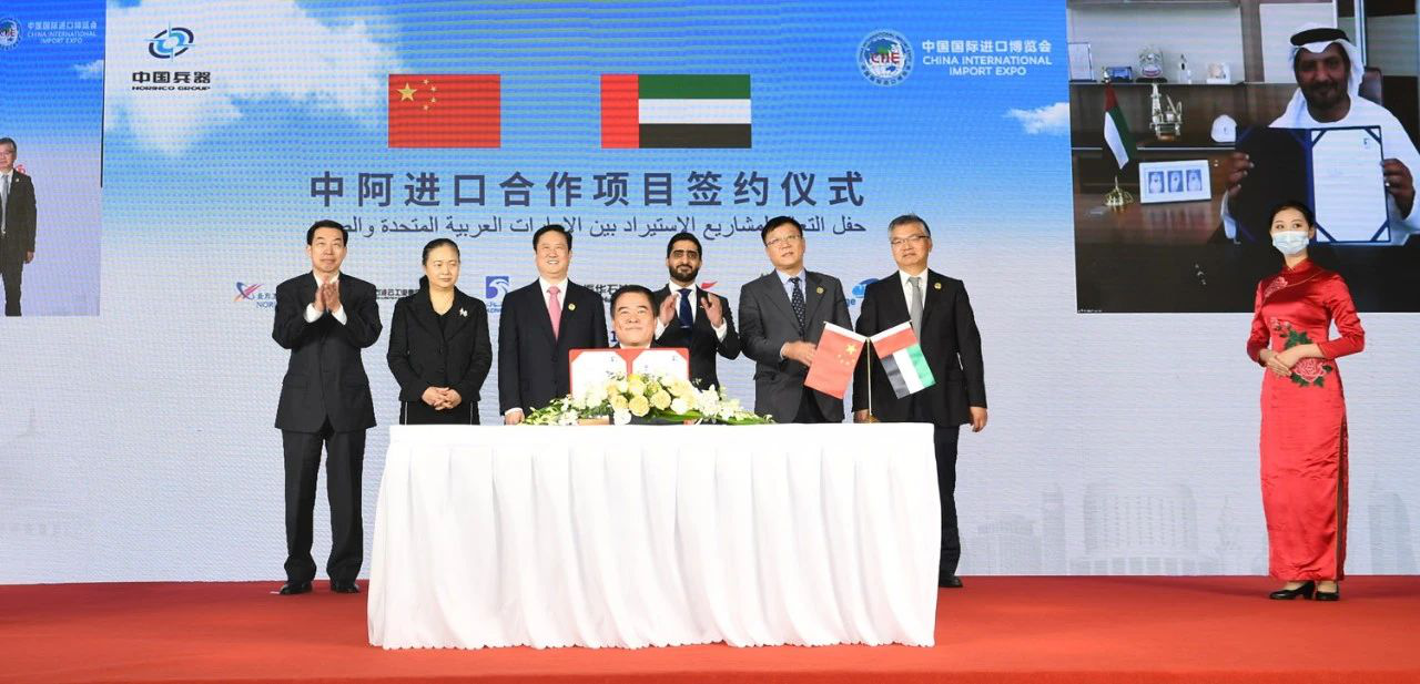 11月4日,举办阿拉伯联合酋长国和中国兵器工业集团进口专场签约活动,与阿联酋合作伙伴签署三项重大一揽子进口贸易合同,涉及工业原料采购、精细化工品采购及矿产品采购,有力拓展集团公司与阿联酋企业在石油、矿产、工业原材料等领域的业务深度和合作广度,为巩固中阿友谊作出新贡献。