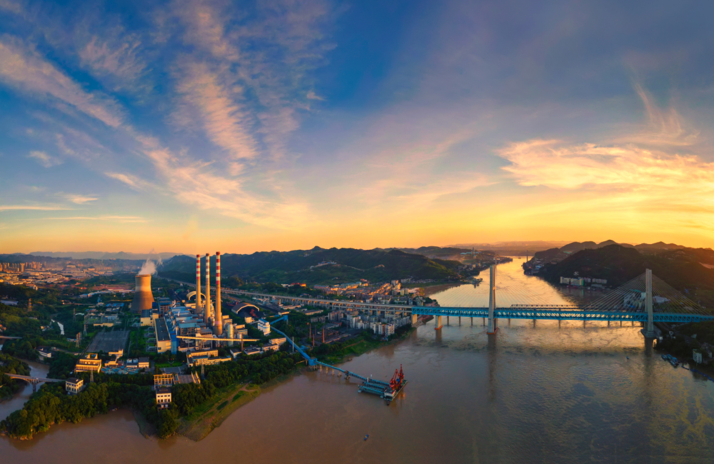 作品说明:近两年,华能珞璜电厂投入巨资,对原6台机组进行了全部超低排放改造。该照片拍摄于2018年7月,改造完成后的一个黄昏,晚霞映红了天空,暖色的阳光映照在电厂四周,形成了一副壮丽的风景画。