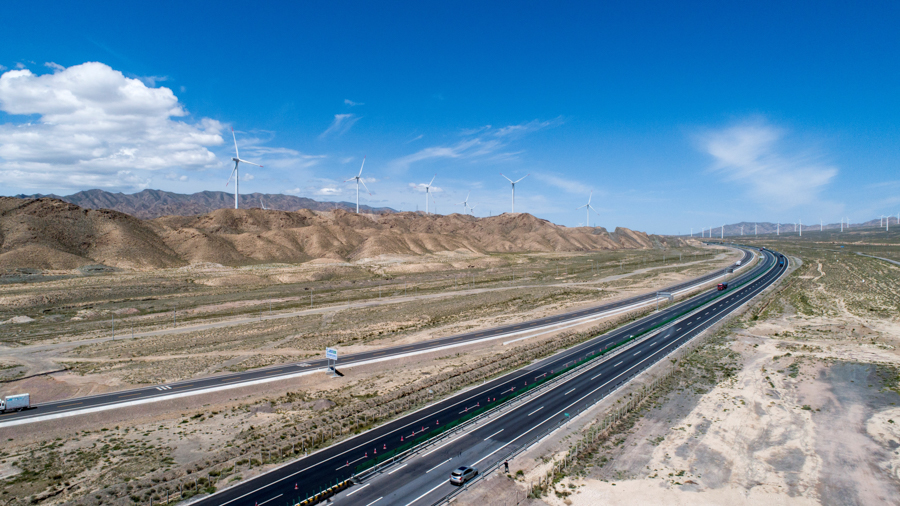 作品说明:甘肃河西走廊是千万级风电场新能源基地。