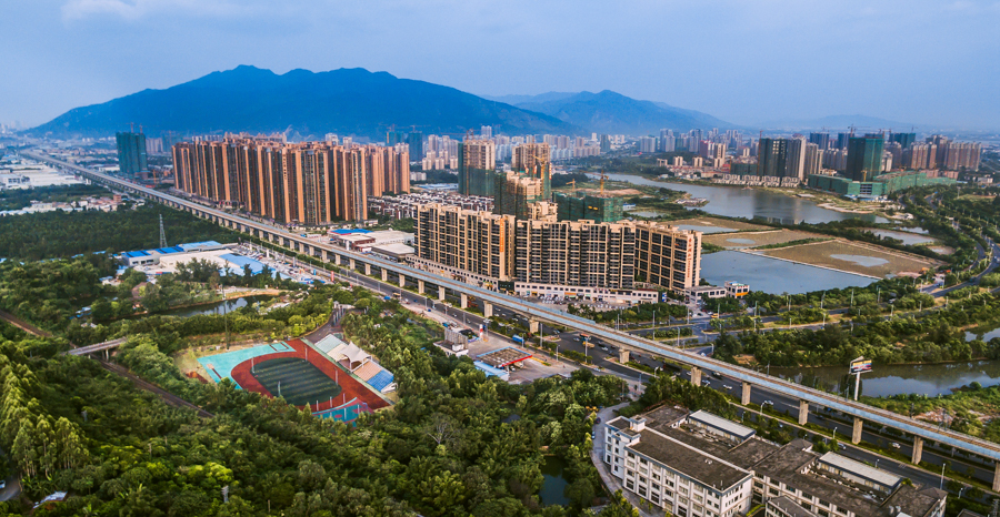 作品说明:中铁七局承建的佛肇城际铁路穿城而过。